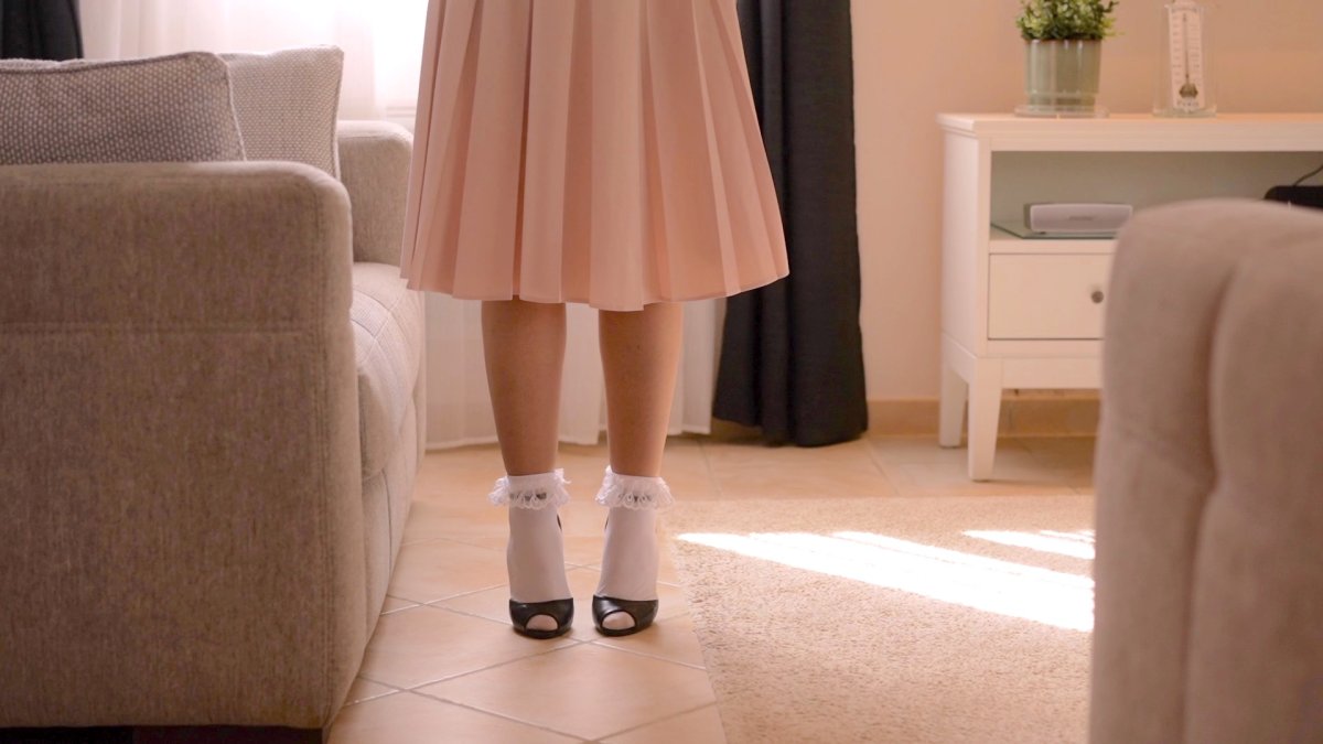 SANDALS, STOCKINGS AND LEATHER DRESS