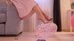 I'm wearing my fluffy mules and a sheer black dress, and I'm reading a book on my sofa. With dreamy music playing in the background, I'm swinging my feet and my mules for your pleasure.