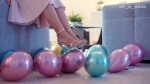 I'm wearing my fluffy mules and a sheer black dress, and I'm reading a book on my sofa. With dreamy music playing in the background, I'm swinging my feet and my mules for your pleasure.