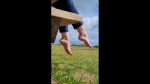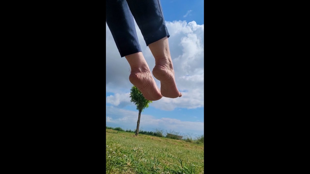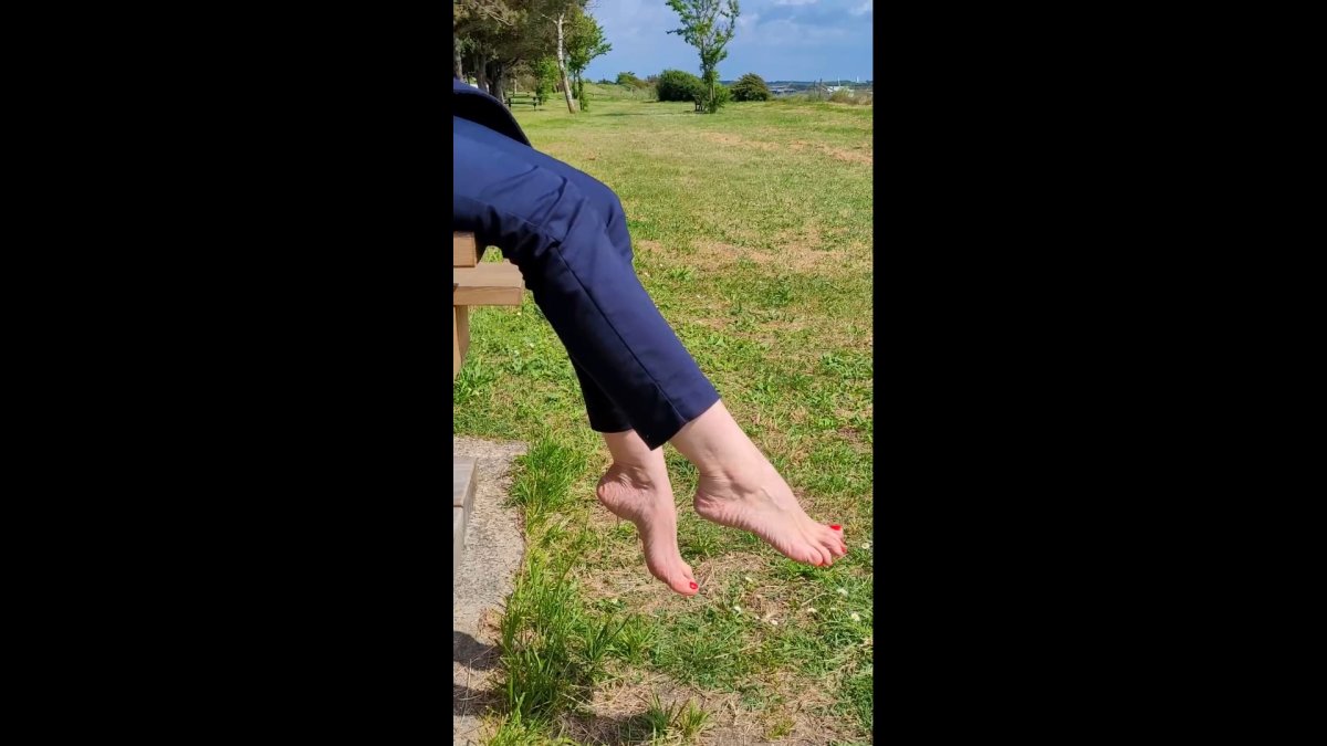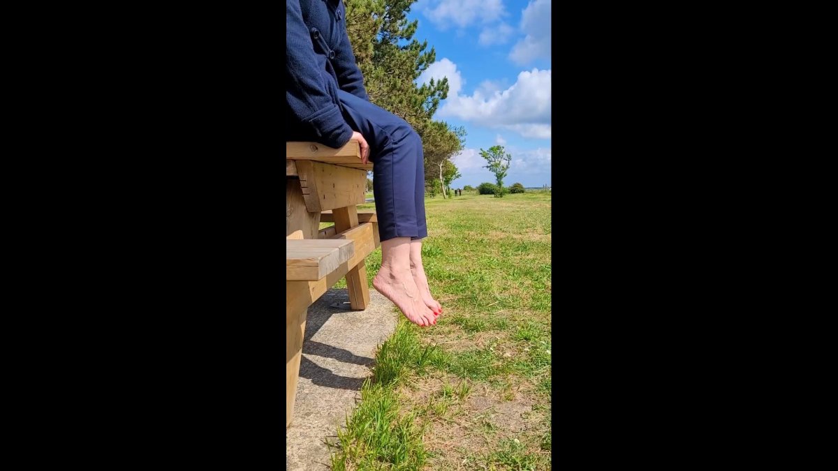 Dry feet video where I move my feet on a bench by the sea. Many different views of the sides and soles.