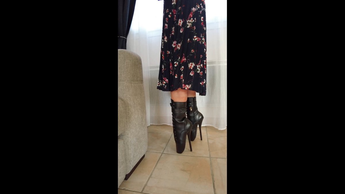 I'm wearing my fluffy mules and a sheer black dress, and I'm reading a book on my sofa. With dreamy music playing in the background, I'm swinging my feet and my mules for your pleasure.