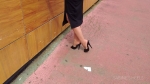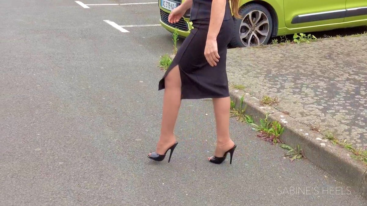 Wearing my Pleaser Domina mules, I walk to the ATM to withdraw some money, then I go to fill up my car with gas. When I get home, I relax on the sofa.