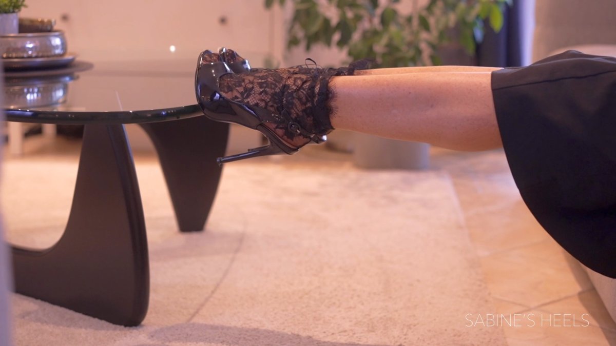 I'm wearing my fluffy mules and a sheer black dress, and I'm reading a book on my sofa. With dreamy music playing in the background, I'm swinging my feet and my mules for your pleasure.