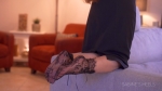 Video with a dreamy musical background where I move my feet with black opentoe and lace socks in many different views of the sides and soles.