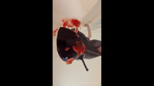 In this video, I crush expired fruits with my SLM mules. There are many different shots with and without tights, and even without shoes.