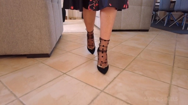 Video with a dreamy musical background where I move my feet with black and PVC clear pumps and lace socks in many different views.