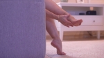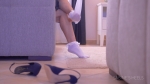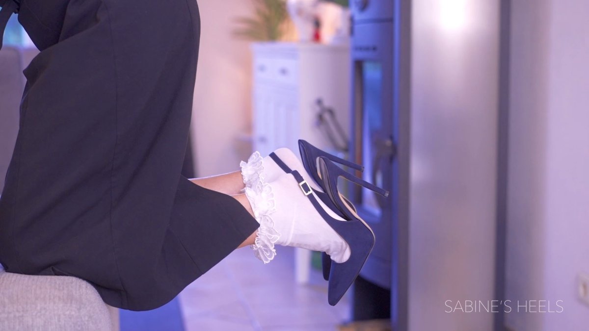 Video with a dreamy musical background where I move my feet with blue suede slingbacks and white socks in many different views of the sides and soles.