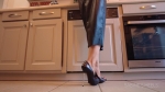 I'm wearing leather skirt and Fuss Schuhe metal heels opentoe and I'm pretending to have foot cramps and pain that prevent me from walking.