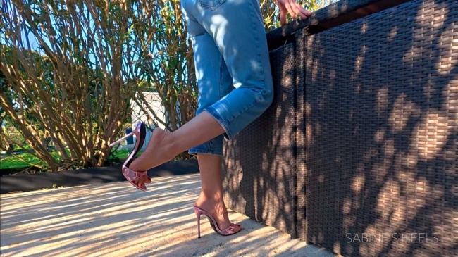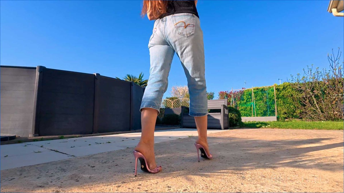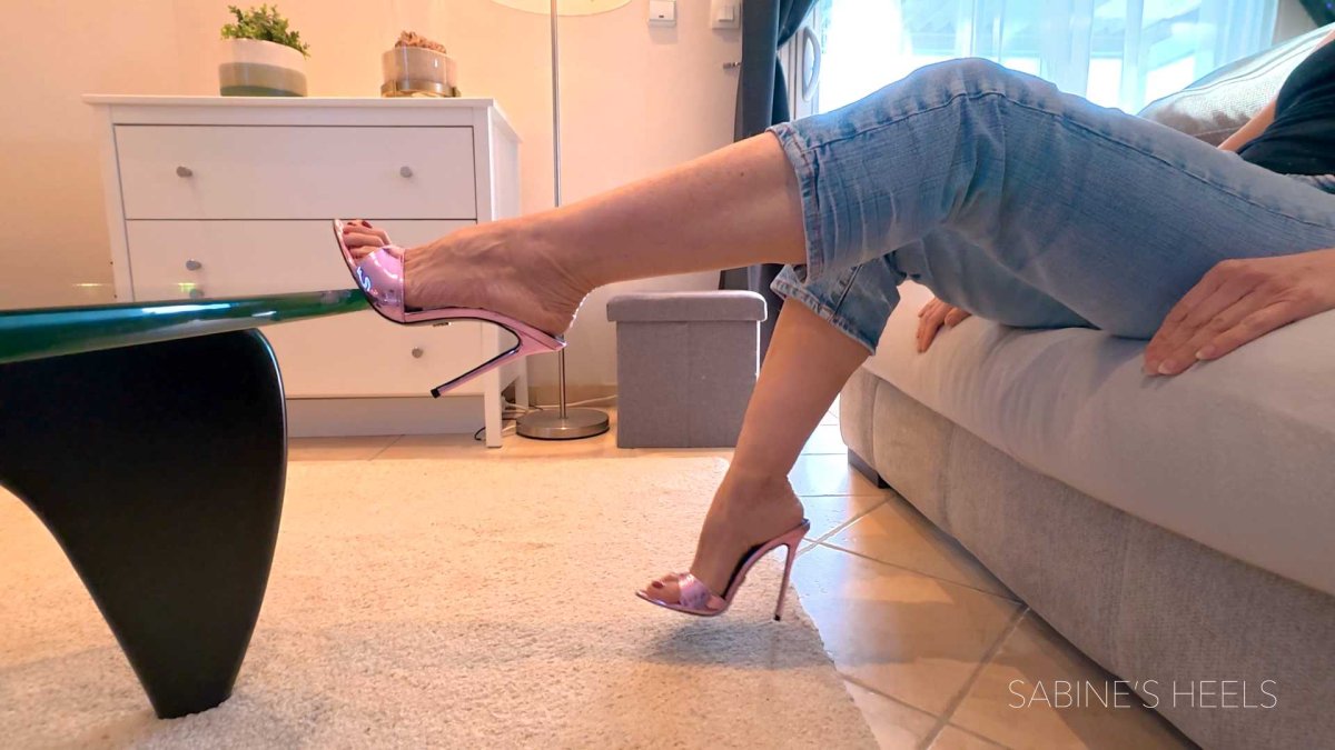 Video with a dreamy musical background and heels sound where I walk at home with a casual outfit : Pink mules and jeans Duration : 8min08 Format : Landscape
