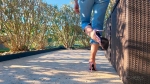 Video with a dreamy musical background and heels sound where I walk at home with a casual outfit : Pink mules and jeans