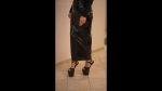 Video with a dreamy musical background where I move my oiled feet with a leather catsuit, in many different views of the sides and soles.