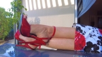 Video with a dreamy musical background where I move my feet with red leather slingbacks and lace socks in many different views of the sides and soles.
