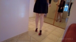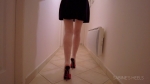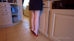 Video with a dreamy musical background where I walk at home with 6.5inch FUSS red mules and white tights.