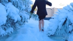 REDSOLES PUMPS AND SEAMED NYLONS IN THE SNOW