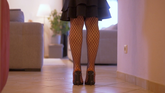 Video with a dreamy musical background where I move my feet with black fishnets and black SLM mules  in many different views.